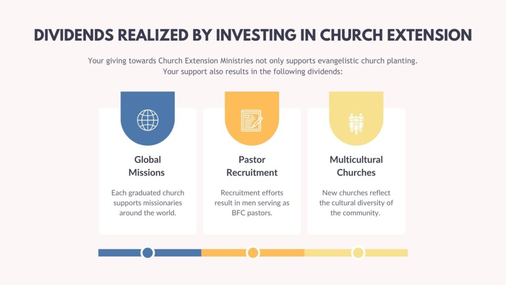 Follow me as I spell out several dividends that are realized from investing in Church Extension Ministries: